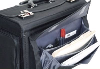 Deux poches zippées latérales faire plus de capacité pour votre essentiels entreprises plus petites. organisateur rabat supérieur a un porte-carte, porte-plume, et plus encore.